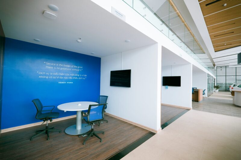 Khu vực trưng bày xe được bố trí theo tiêu chuẩn thiết kế của Ford Signature, khu vực đón tiếp và phòng chờ khách hàng được thiết kế tiện nghi, hiện đại với đầy đủ các dịch vụ thư giãn hoàn toàn miễn phí giúp khách hàng có khoảng không gian và thời gian thoải mái khi chờ thực hiện các dịch vụ tại Quảng Bình Ford.
